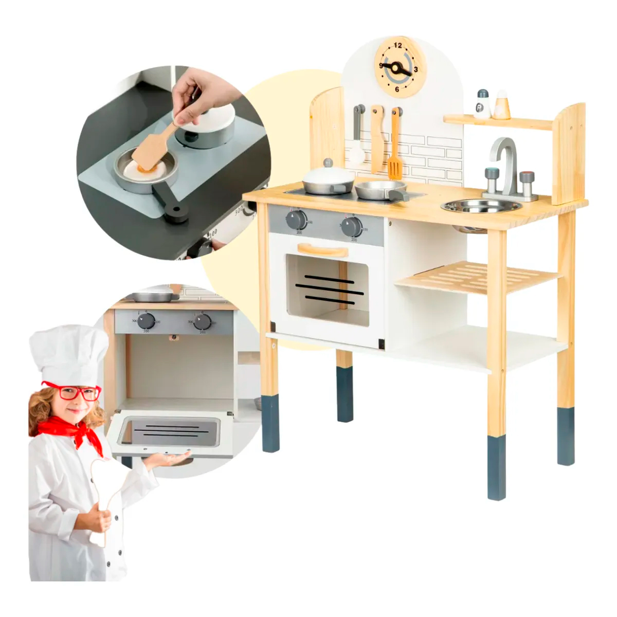 Cocina De Madera Juguete Didáctico Cocinita Infantil con Accesorios