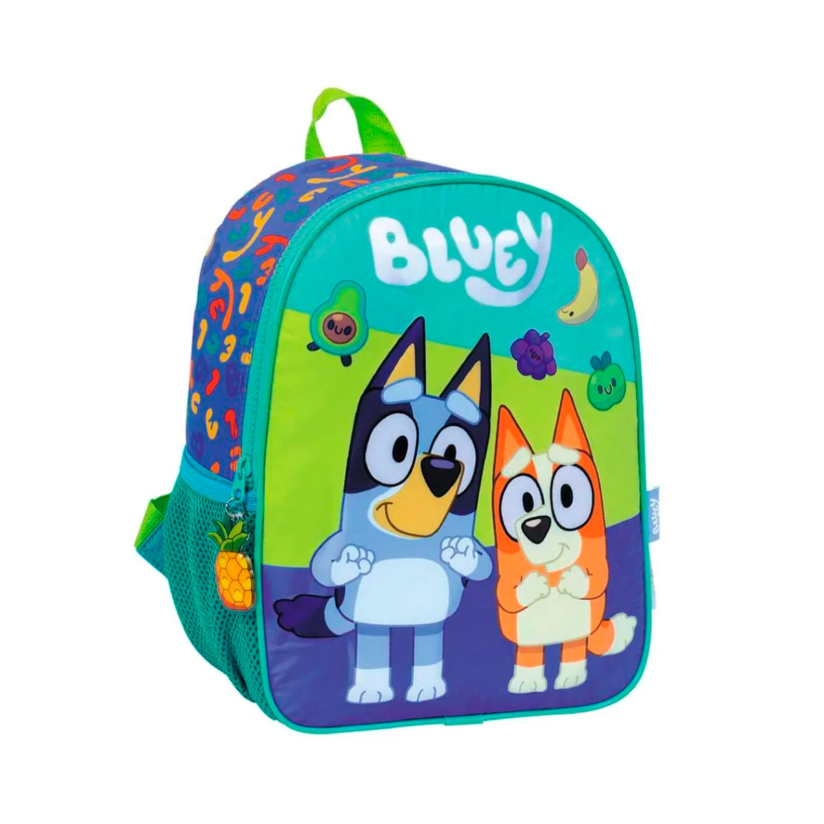 Mochila Escolar Bluey Frutas 12 Pulgadas Espalda