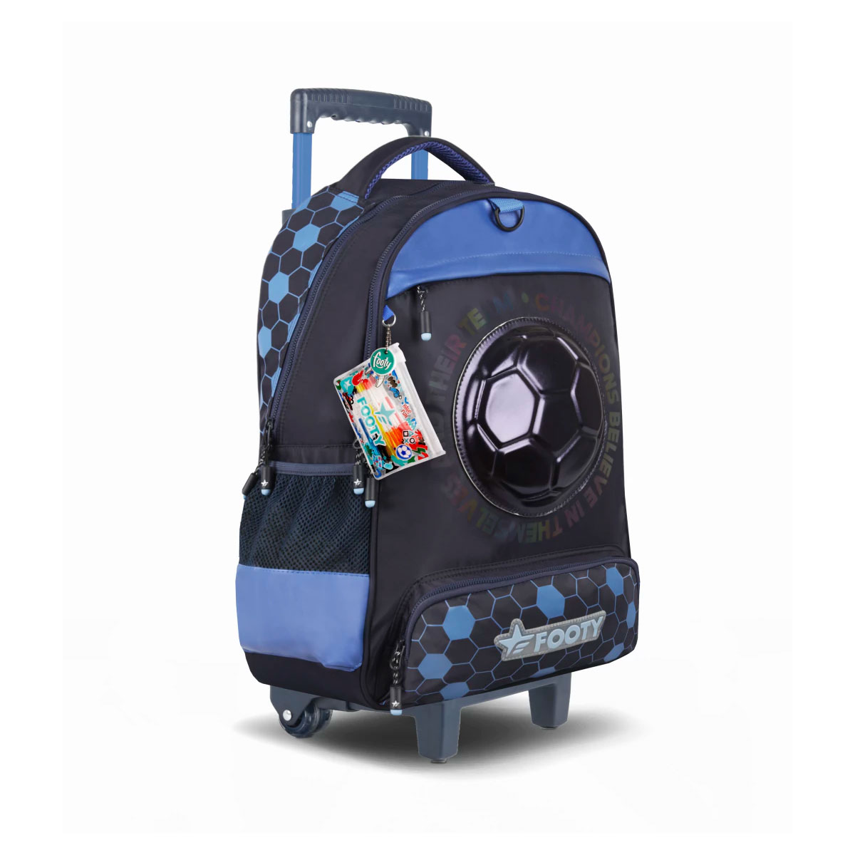 Mochila Footy Pelota Relieve Con Carro 18 Pulgadas