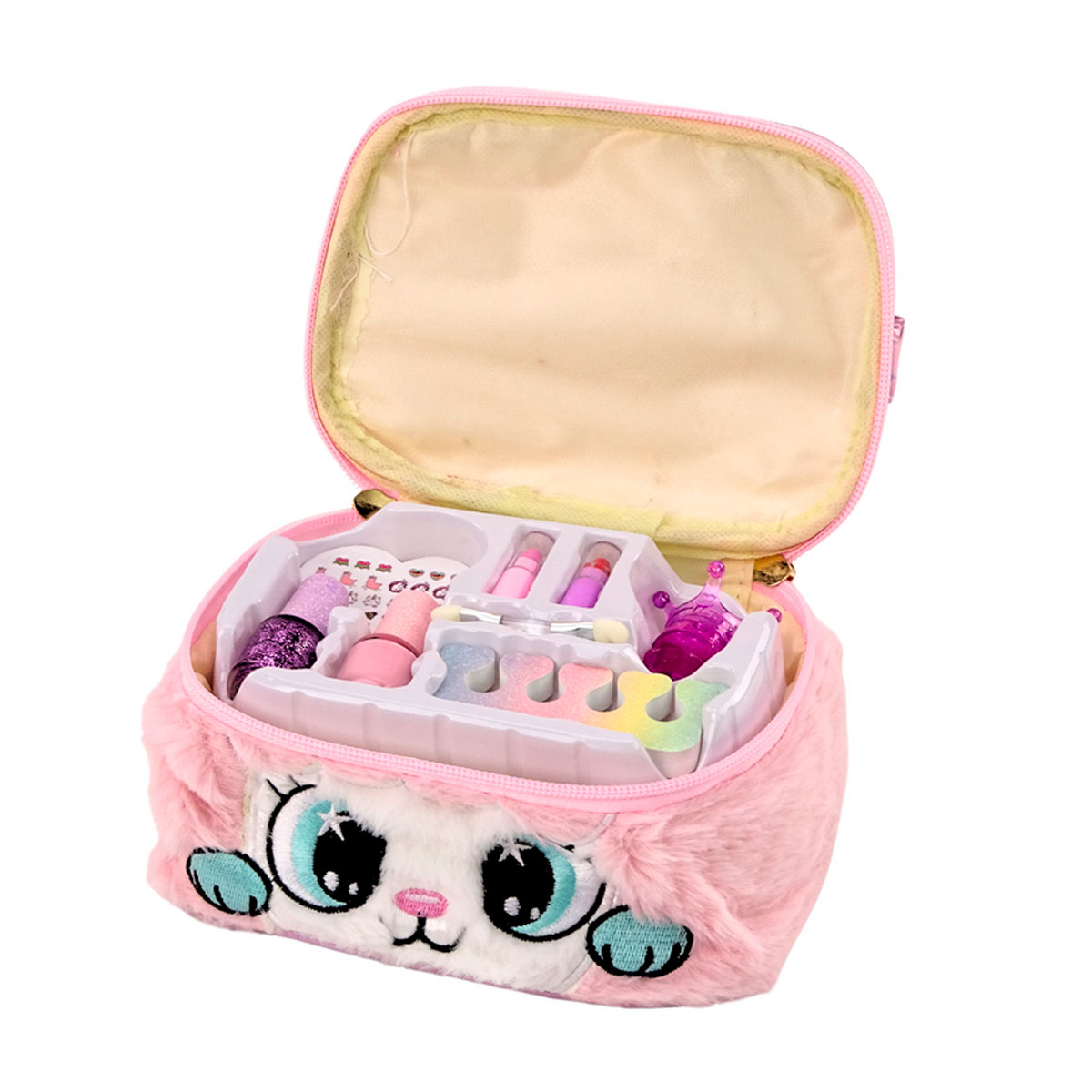 Set de belleza, neceser de peluche, esmalte de uñas y labiales de gatito