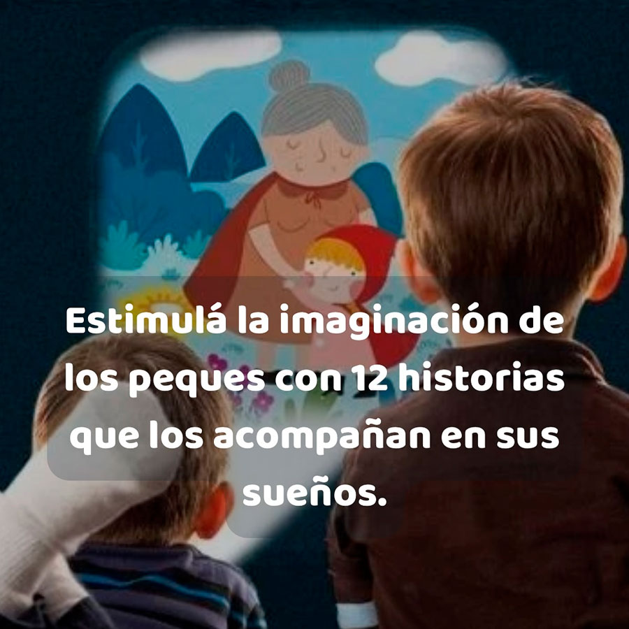 Este encantador dispositivo 2 en 1 ilumina suavemente la habitación con estrellas relajantes y proyecta 12 cuentos clásicos para acompañar a tus pequeños al mundo de los sueños.